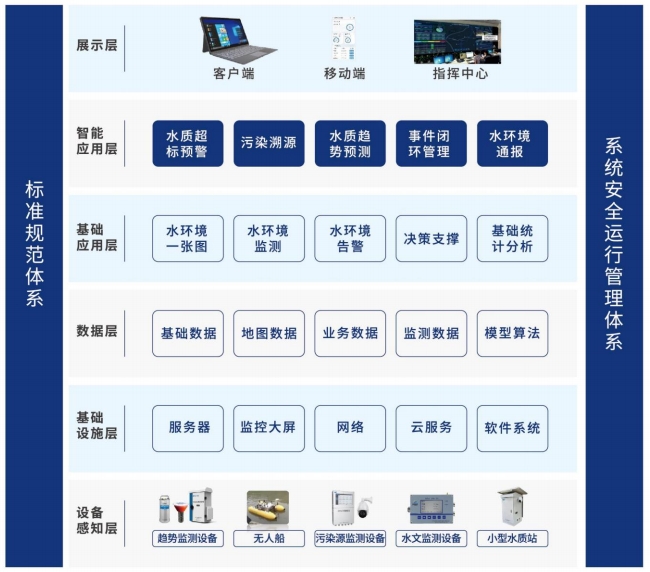 從現(xiàn)場端和系統(tǒng)平臺端搭建覆蓋水環(huán)境的源-網(wǎng)-廠-河-流域在線感知網(wǎng)絡(luò);